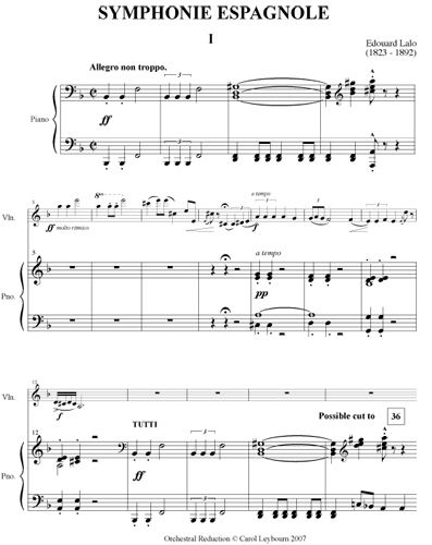 Simplified Piano Score for Lalo - Symphonie Espagnole